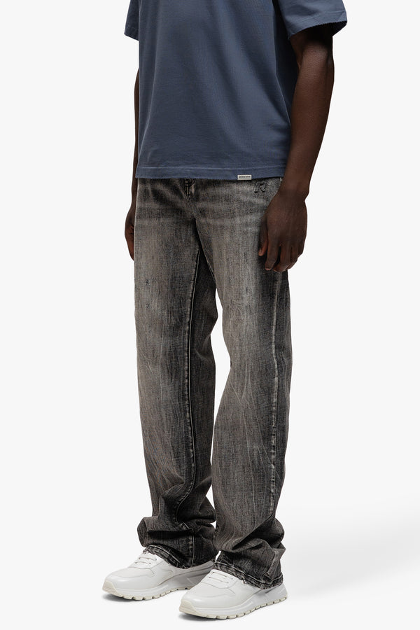 This jeans comes with our embossed logo detail on the front and is finished with distressed parts around the tighs and bottom.