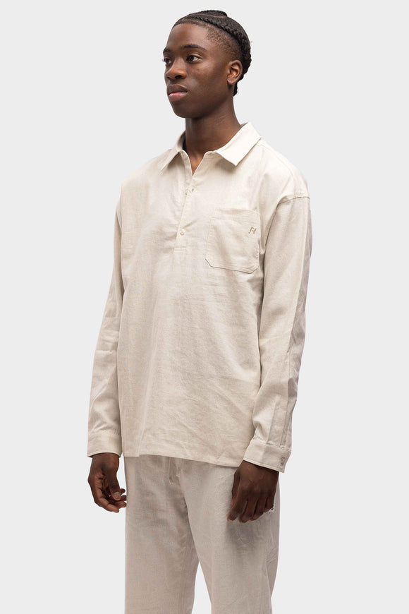 LINEN SHIRT QUARTER BUTTON SAND
